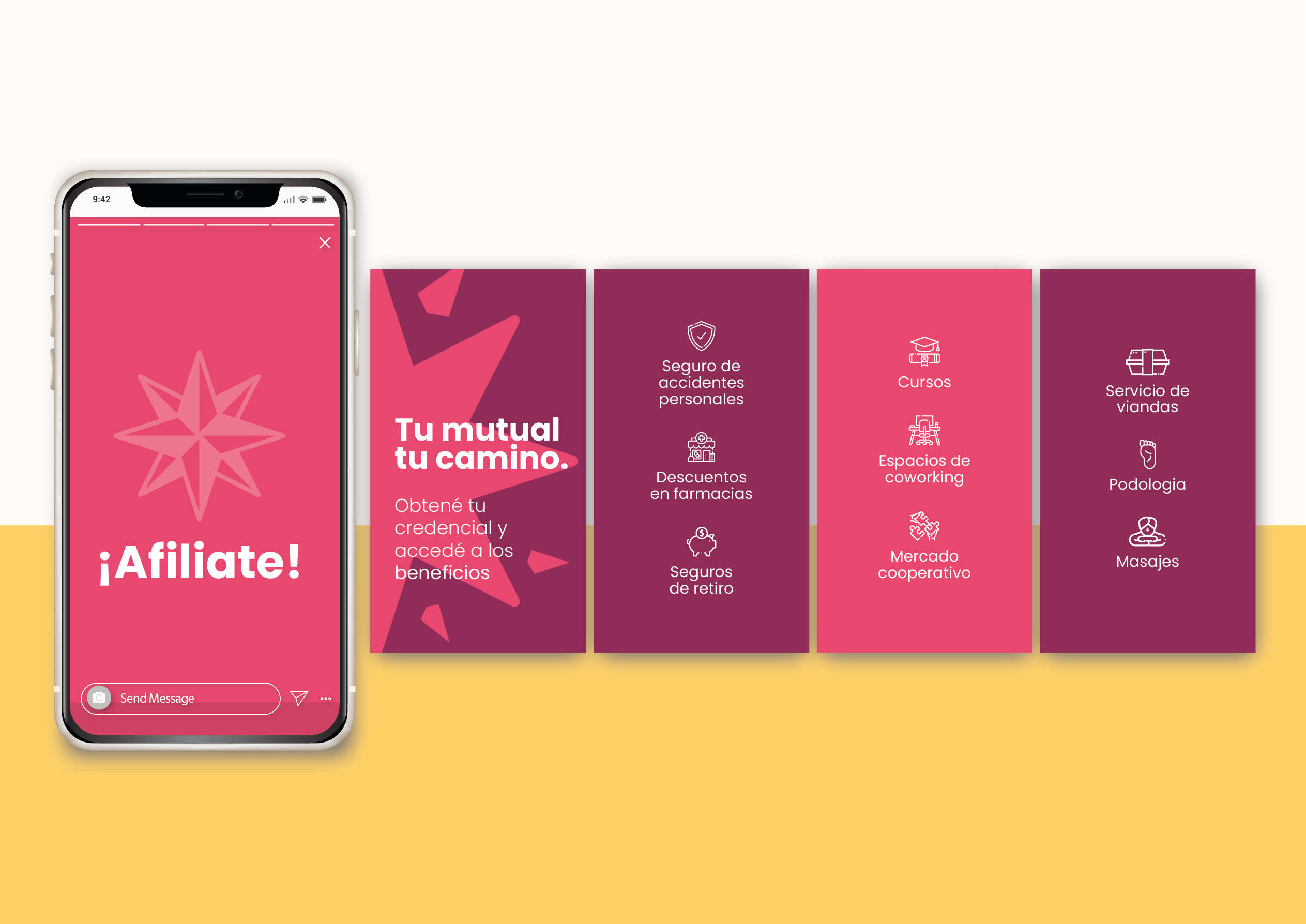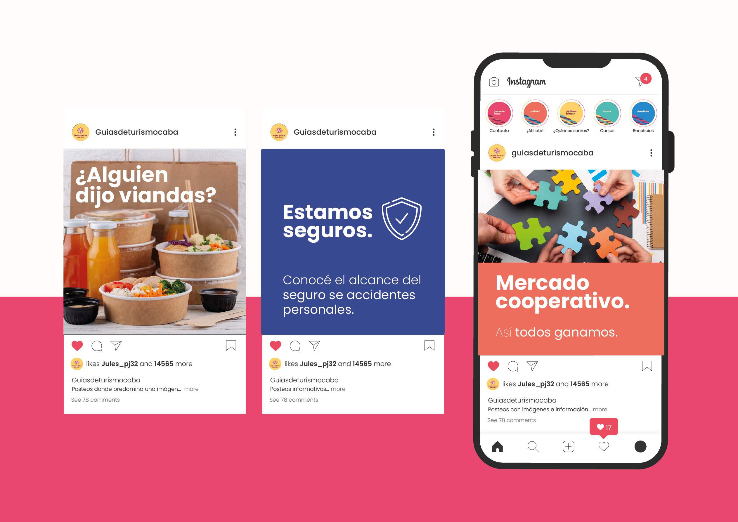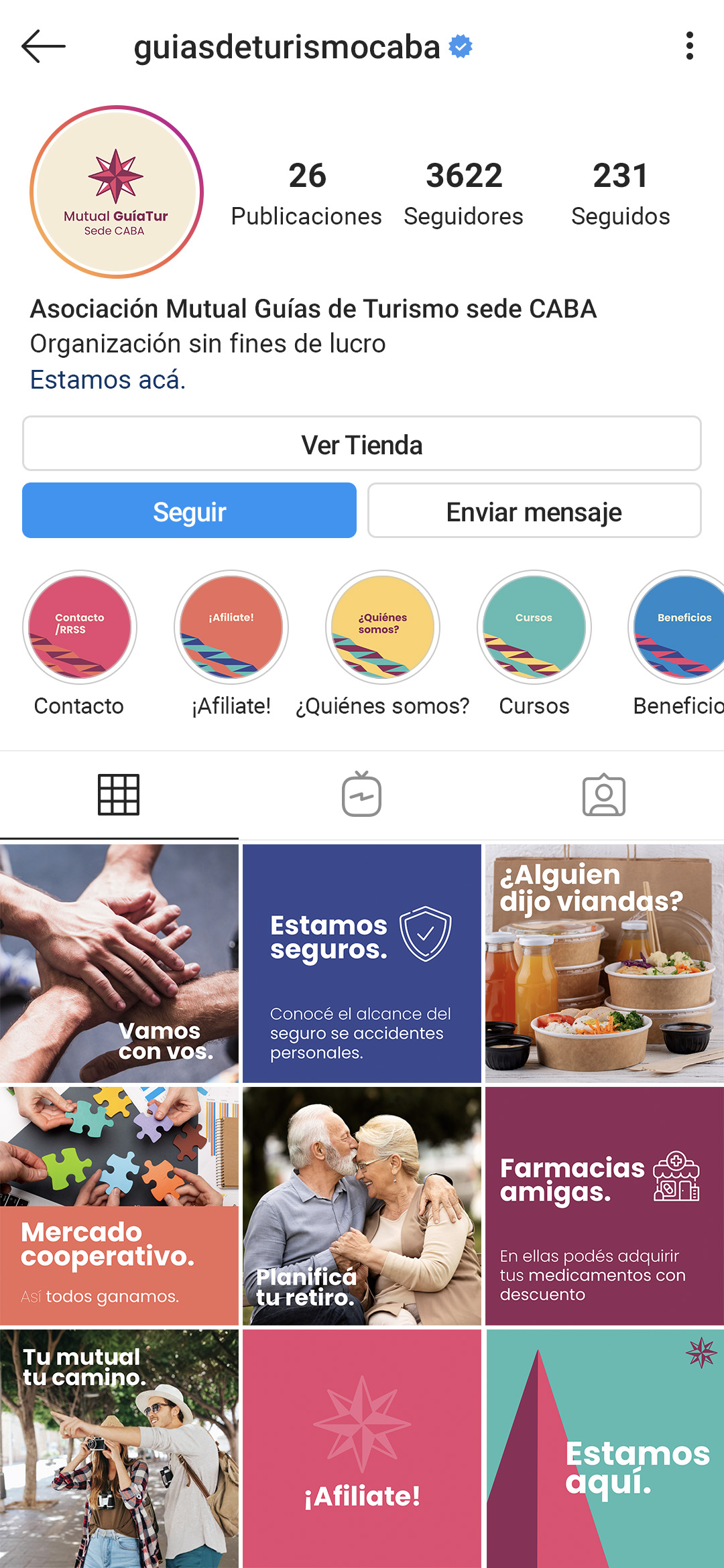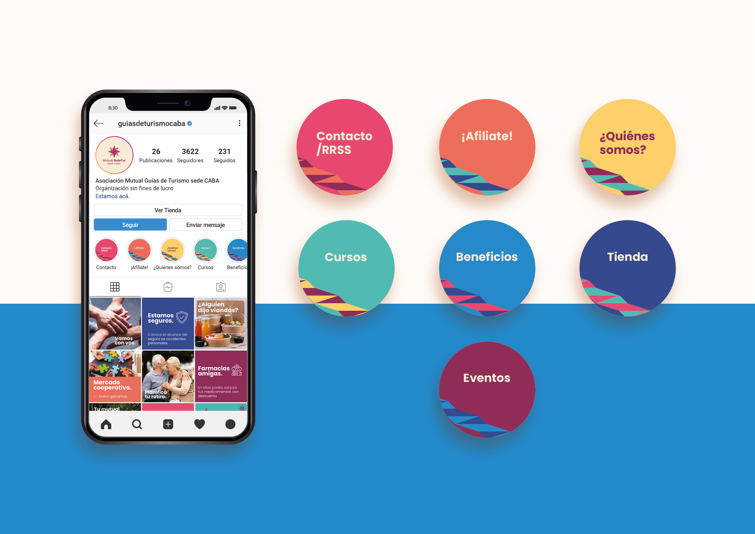 Se trata de un desarrollo de logo e identidad visual desde cero. La mutual fue creada para dar respuesta a la necesidad de tener una cobertura para los guías de turismo quienes suelen ser monotributistas. Tomé como punto de partida conceptos como: “ser aliados, mirada innovadora, respaldo, empatía, autogestión, empuje y espíritu cooperativo”. Así es como encontré en la brújula el elemento gráfico que me permitió plasmar estos conceptos y dar identidad a esta mutual que acompañará al guía turístico en su día a día.