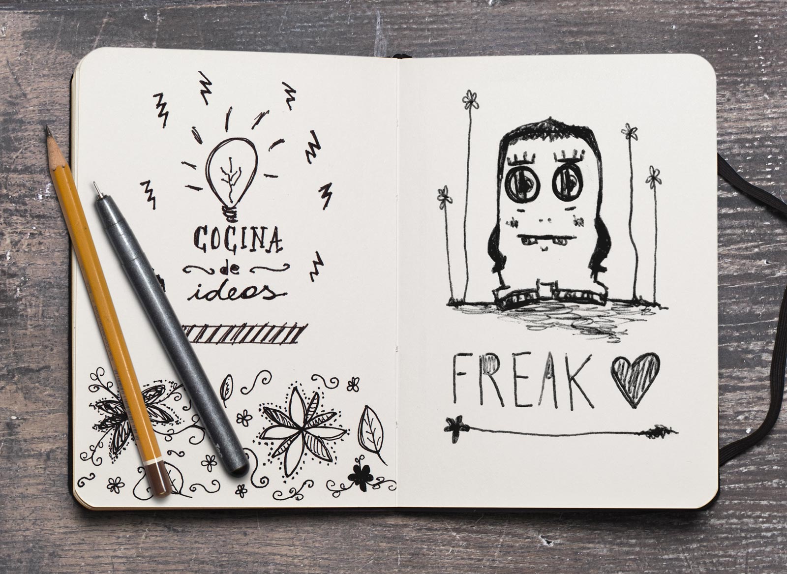 Esto que acontece aquí es una muestra de aquello que pasa cuando agarro el lápiz, las microfibras, los pinceles o la tableta digital. Es un cable a tierra donde surgen estos personajes y frases ilustradas.