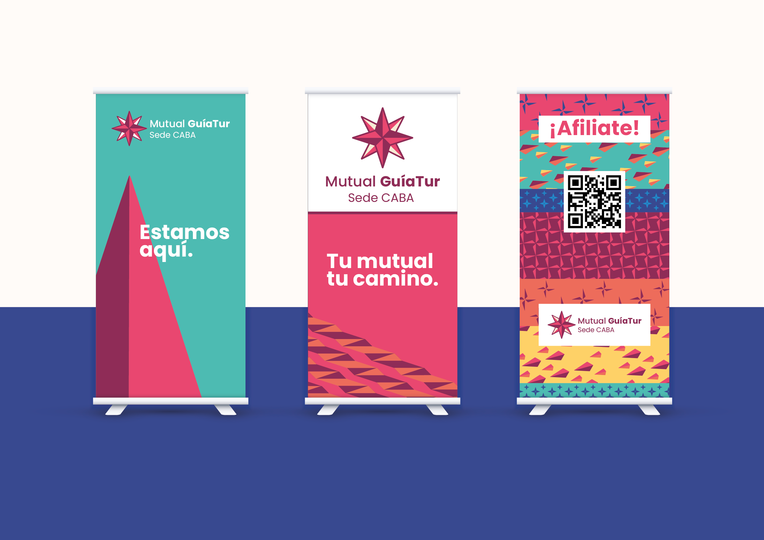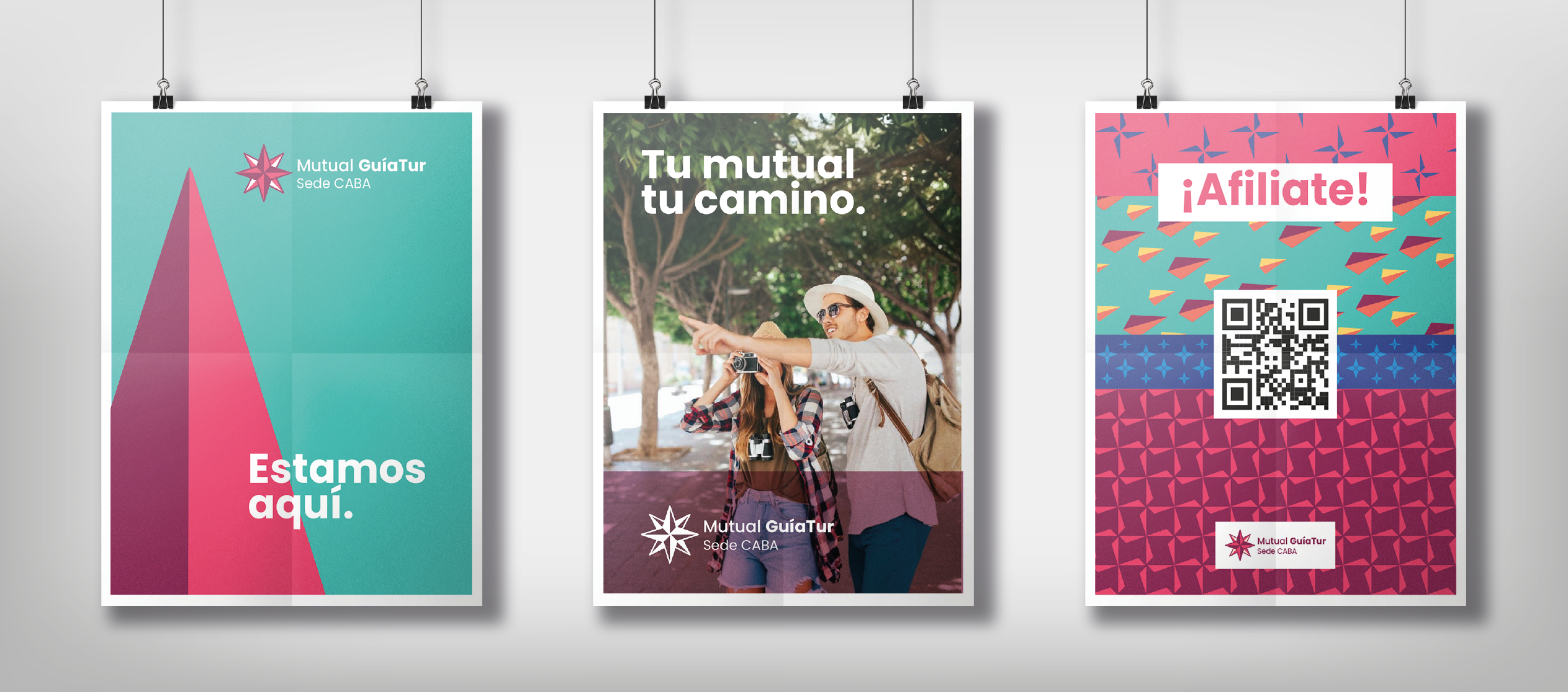 Se trata de un desarrollo de logo e identidad visual desde cero. La mutual fue creada para dar respuesta a la necesidad de tener una cobertura para los guías de turismo quienes suelen ser monotributistas. Tomé como punto de partida conceptos como: “ser aliados, mirada innovadora, respaldo, empatía, autogestión, empuje y espíritu cooperativo”. Así es como encontré en la brújula el elemento gráfico que me permitió plasmar estos conceptos y dar identidad a esta mutual que acompañará al guía turístico en su día a día.