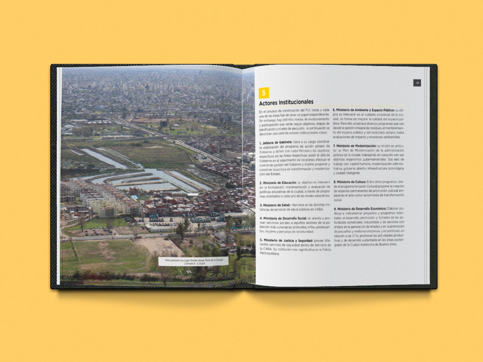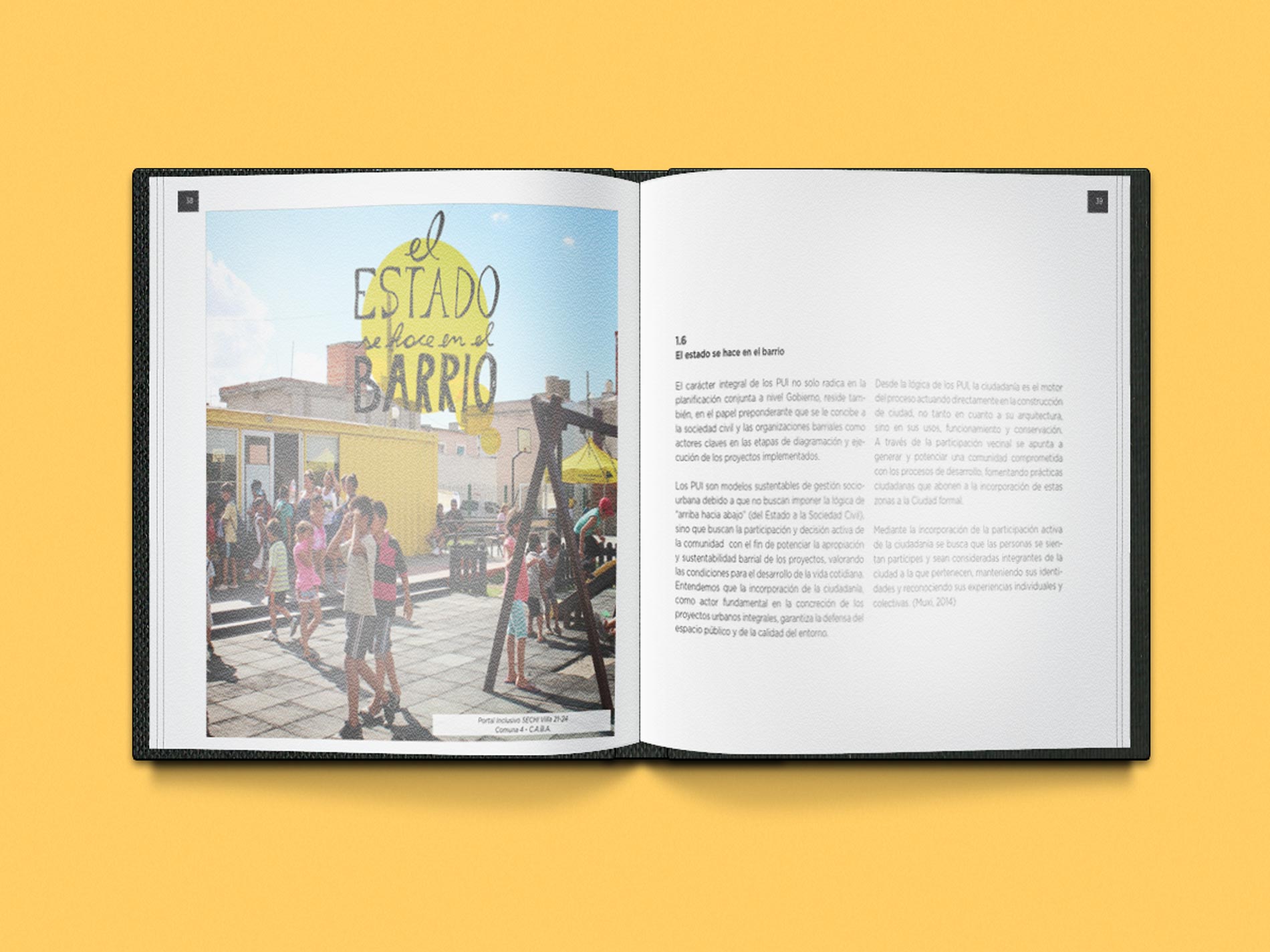 Trabajé en el diseño de este libro encargado por el Gobierno de la Ciudad de Buenos Aires durante el año 2015. En su interior relata el Proyecto de Urbanización Integral (PUI), y hace foco en la urbanización ya en curso de los barrios de emergencia (villas de emergencia) ubicados en la Comuna 8.